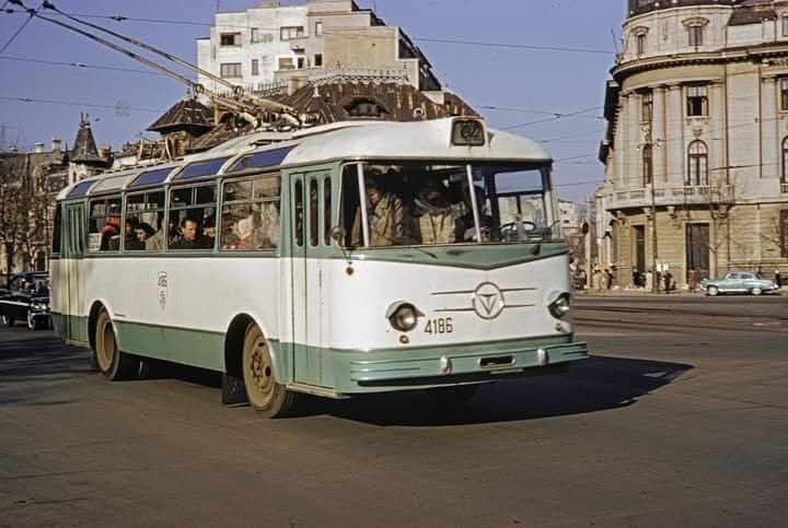 Bucureşti 1969 – Un troleibuz TV 2E în Piaţa Romană